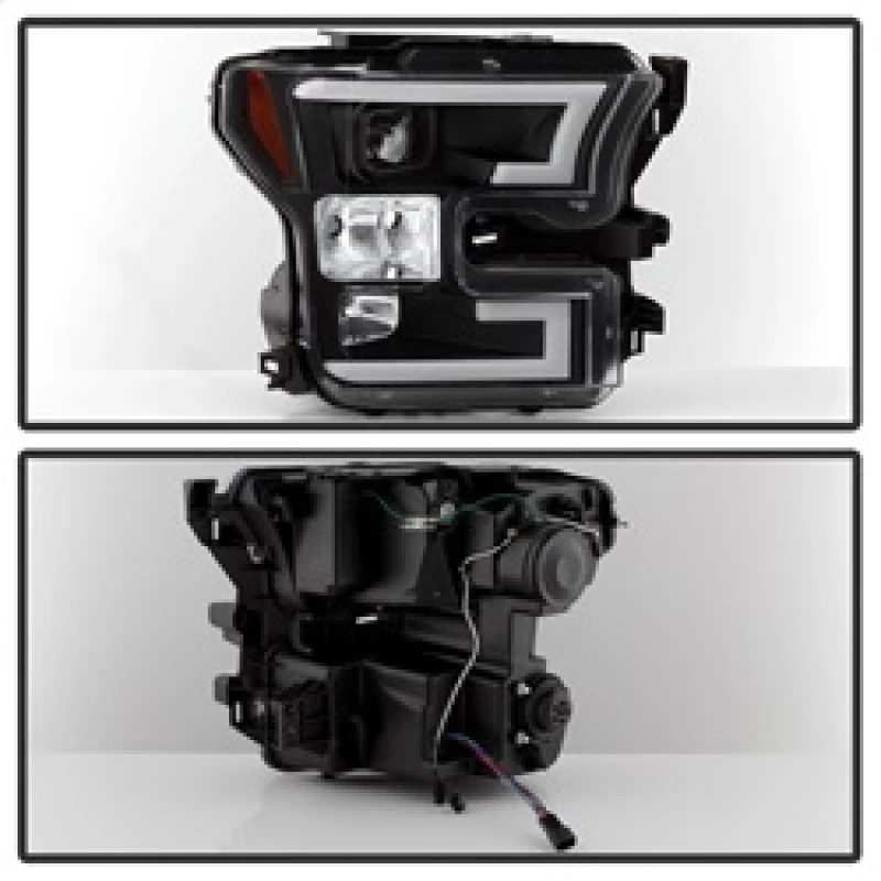 Spyder Ford F150 2015-2017 Projector Headlights - Light Bar DRL LED - Black PRO-YD-FF15015-LBDRL-BK