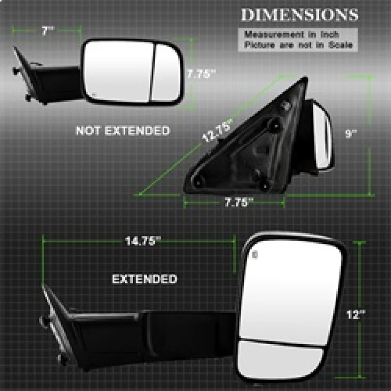 Xtune Dodge Ram 1500 09-12 Power Heated Adjust Mirror Black HoUSing Right MIR-DRAM09S-PWH-R