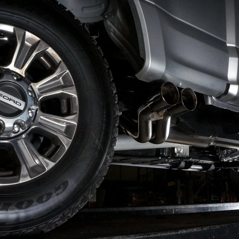Verbessere den Sound deines 2017-18 F-250/F-350 mit unserem aggressiven Sound Catback Auspuffsystem. Dieses 304 Edelstahlsystem ist ein 3" wahres Dual-Catback-System mit X-Pipe und Doppel-Straight-Through-Mufflern.