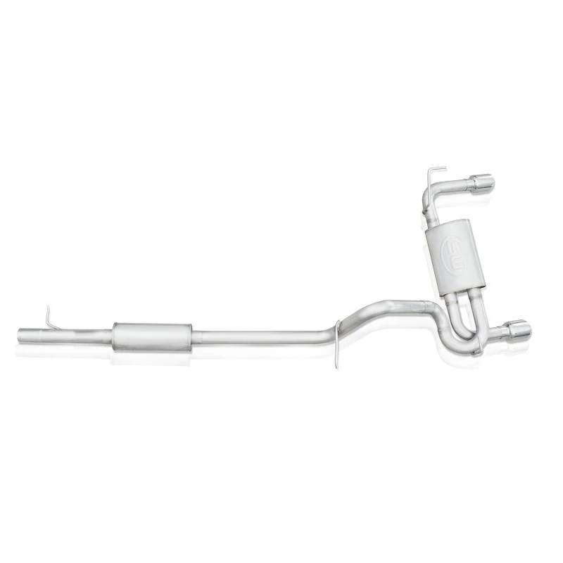 Dieses in Amerika hergestellte System ist TIG-geschweißt und aus 2,5" 304 Edelstahl gefertigt, um Korrosion zu widerstehen und ein Leben lang zu halten. Das System umfasst zwei 4"-Schlitzauslässe, die auf Hochglanz poliert sind, und enthält alles Notwendige für die Installation, außer Werkzeugen und einem kalten Sechserpack.