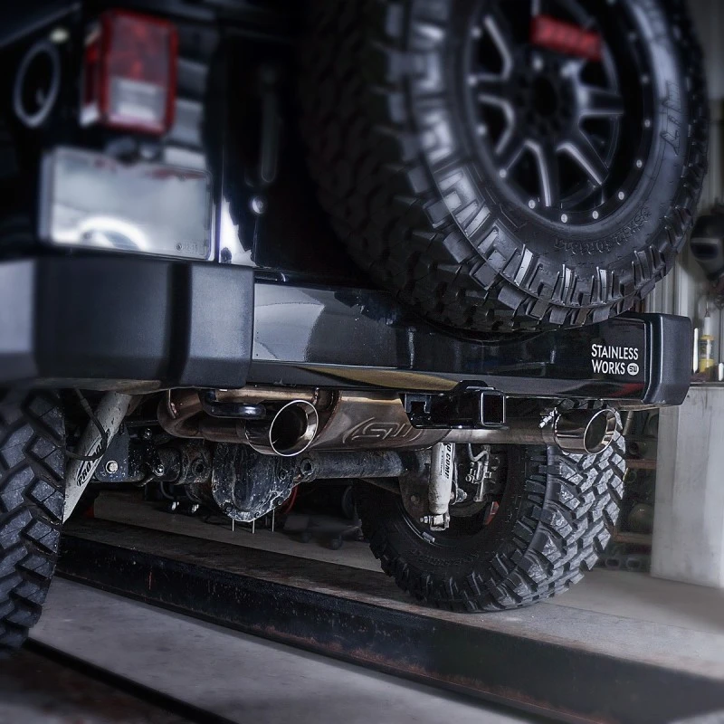 Hol dir das volle Potenzial deines Jeep Wranglers mit dem Stainless Works Kat-Endschalldämpfer-System. Von Experten entwickelt und im Gelände getestet, liefert dieses System ein tiefes Grollen bei niedrigen Drehzahlen während der Fahrt auf unwegsamen Straßen. Die Achs-Endkonstruktion ermöglicht maximale Bodenfreiheit beim Felsenklettern, und die Resonator-Entfernungsröhre sorgt für einen aggressiveren Klang.