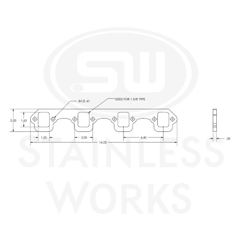 Stainless Works SBF Standard Rechteckige Port 304SS Auspuffflanschen 1-5/8in Primaries (2in BP)