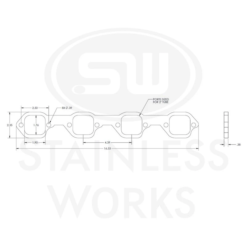 Stainless Works SBF Victor Senior Köpfe Quadrat-Port-Header 304SS Auspuffflansche 2 Zoll Primär