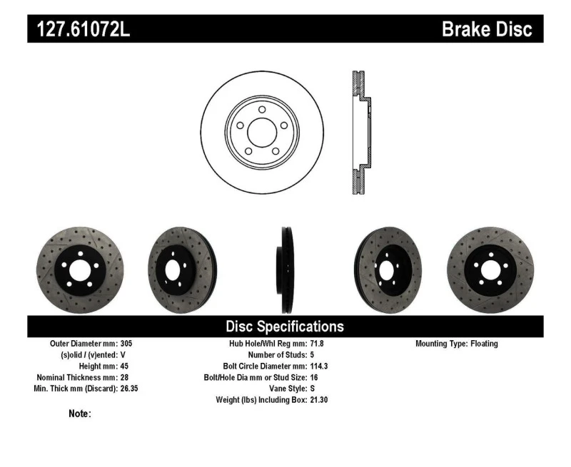 StopTech 03-09 Lincoln Town Car / 03-09 Mercury Grand Marquis Front Left Slotted & Drilled Rotor